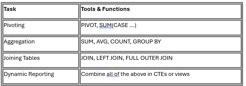 Reshaping Datasets with SQL: Pivoting, Aggregation, and Joins