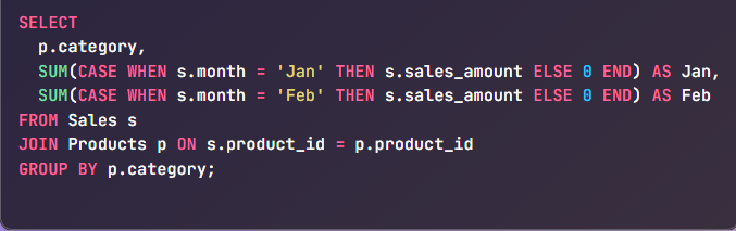 Outcome: One row per category, with separate columns for each month’s total sales.