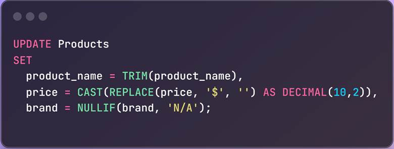 Use UPDATE Statements to Apply Changes Permanently: Once you're confident in your cleaning logic, apply it directly to your database.
